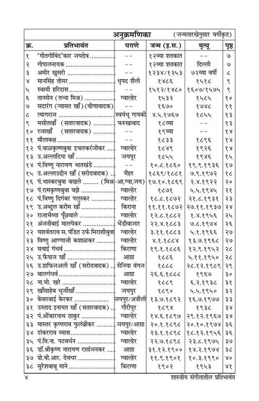 हिंदुस्थानी शास्त्रीय संगीतातिल प्रतिभावंत
